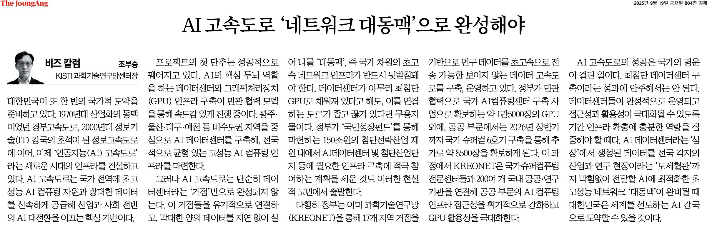 | AI 고속도로 ‘네트워크 대동맥’으로 완성해야 |